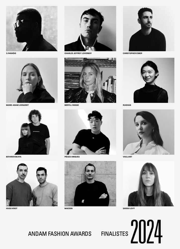 Six candidates are vying for the Grand Prize of 300,000 euros and the Special Prize of 100,000 euros: the Franco-Canadian label 3.Paradis led by Emeric Tchatchoua, Scottish designer Charles Jeffrey of the streetwear brand Charles Jeffrey Loverboy, the eponymous brand of Australian designer Christopher Esber, young Brussels-based designer Marie Adam-Leenaerdt known for her minimalist silhouettes, Belgian designer Meryll Rogge, a graduate of the Royal Academy of Antwerp, and Chinese designer Ruohan Nie, a Central Saint Martins alumna heading the brand Ruohan.